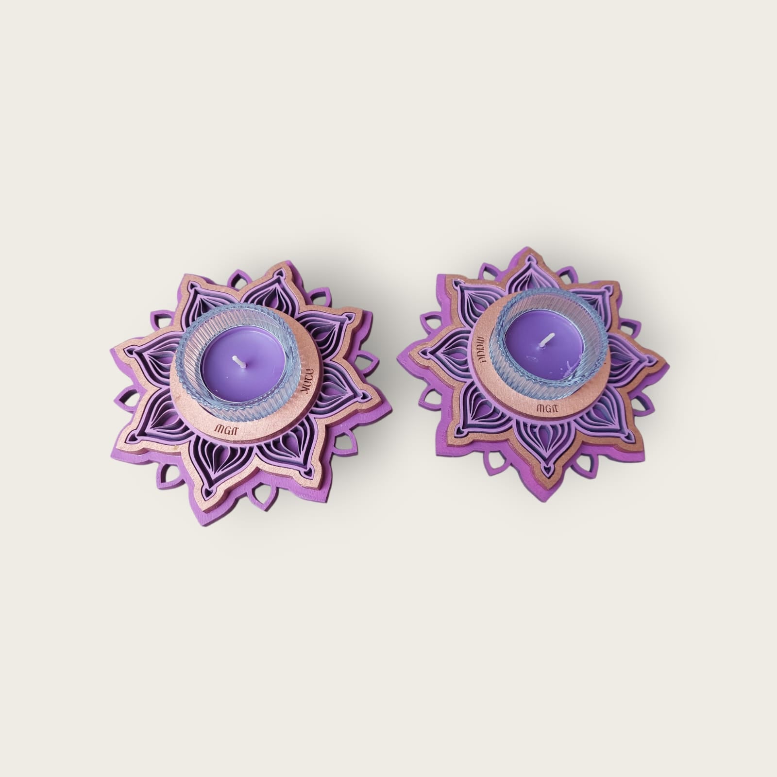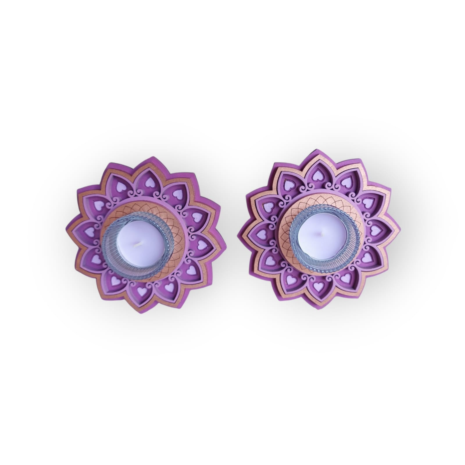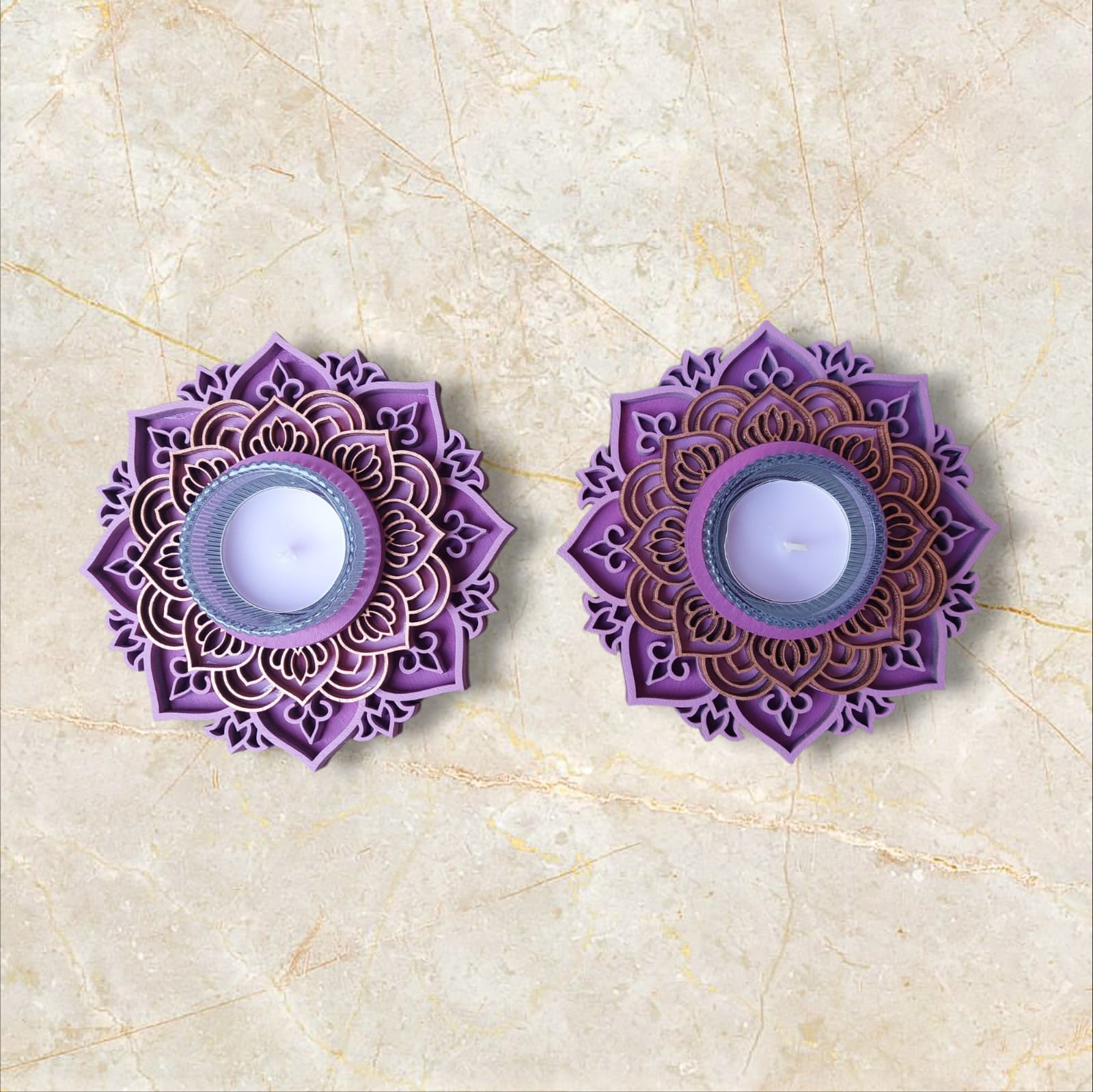 פמוטי אור – זוג פמוטים בעיצוב מנדלה בשכבות עם נרות ריחניים