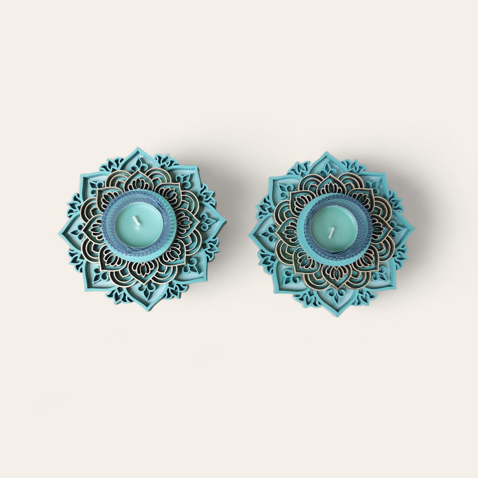 פמוטי אור – זוג פמוטים בעיצוב מנדלה בשכבות עם נרות ריחניים